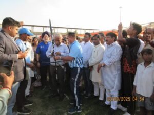 सोनभद्र। जनपद सोनभद्र में केन्द्रीय पेट्रोलियम एवं प्राकृतिक गैस मंत्री भारत सरकार हरदीप सिंह पुरी जी ने आज विशिश्ट स्टेडियम तियरा में पहुंचकर भगवान बिरसा मुण्डा व स्वामी विवेकानन्द के चित्र पर माल्यार्पण कर तीसरी तीरंदाजी प्रतियोगिता का दीप प्रज्ज्वलन कर शुभारंभ किये, इस दौरान मंत्री जी ने संसद सदस्य स्थायी निधि से 12 एल0ई0डी0 सहित दो हाईमास्ट का शिलान्यास भी किये, इस दौरान मंत्री जी ने कहा कि जनपद सोनभद्र में तीरंदाजी प्रतियोगिता का आयेजन हो रहा है, जिसमें जनपद के ही नहीं देश व प्रदेश के प्रतिभागी प्रतिभाग कर रहे हैं और अपने प्रतिभा को दिखा रहे हैं, इस प्रतियोगिता के माध्यम से अच्छे खिलाड़ी स्टेट स्तर के साथ ही अन्तर्राष्ट्रीय स्तर पर प्रतिभाग कर देश व प्रदेश का नाम रौशन करेंगंे, इस प्रतियोगिता में प्रतिभाग करने वाले 10 महिला प्रतिभाग एवं 10 पुरूष वर्ग को विशेष प्रकार का किट उपलब्ध कराया जायेगा, जिससे वह आगे की प्रतियोगिताओं में आगे बढ़ सकेंगें, इस दौरान तीरंदाजी एसोसिशन के अध्यक्ष अवनीश अवस्थी जी ने कहा कि प्रदेश सरकार तीरंदाजी के क्षेत्र में लोगों को आगे लाने हेतु विशेष ध्यान दे रही है और उत्तर प्रदेश के तीरंदाजी के छात्र अब नेशनल लेबल की प्रतियोगिता में भी प्रतिभाग कर रहे हैं, इस दौरान तीरंदाजी के क्षेत्र में इण्टरनेशनल स्तर पर खेलने वाले अतुल वर्मा, जीना तारा, निष्ठा गुप्ता को किट देकर मंत्री जी द्वारा सम्मान किया गया। इस दौरान तीरंदाजी एसोसएशन जनपद सोनभद्र के अध्यक्ष रामसकल, तीरंदाजी एसोसिएशन के सचिव बलिराम जी ने तीरंदाजी प्रतियोगिता के सम्बन्ध में विस्तार पूर्वक जानकारी दी और मंत्री जी के प्रति कृतज्ञता ज्ञापित की। इस मौके पर प्रदेश सरकार के मंत्री संजीव कुमार गोंड़, जिलाधिकारी बी0एन0 सिंह, मुख्य विकास अधिकारी जागृति अवस्थी, भाजपा जिलाध्यक्ष नन्दला गुप्ता सहित अन्य सम्बन्धित पदाधिकारीगण उपस्थित रहे। इस दौरान मंत्री जी ने धनुष व तीर से निशाना भी साधा।