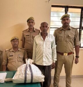 सोनभद्र। पुलिस अधीक्षक सोनभद्र अशोक कुमार मीणा के निर्देशन में अपर पुलिस अधीक्षक (ऑपरेशन) व क्षेत्राधिकारी सदर के निकट पर्यवेक्षण में दिनांक 31.03.2025 को समय लगभग 16.40 बजे थाना रामपुर बरकोनिया पुलिस द्वारा मुखबिर की सूचना पर मऊकलाँ तिराहा से 01 कि0मी0 आगे धंधरौल डैम जाने वाले मार्ग से 01 नफर अभियुक्त मुन्ना शाह पुत्र मजीद निवासी सिल्थरी चौकी चुर्क थाना रॉबर्ट्सगंज जनपद सोनभद्र उम्र करीब 58 वर्ष के पास से 01 किलो 630 ग्राम नाजायज गांजा बरामद कर गिरफ्तार किया गया। जिसके सम्बन्ध में थाना रामपुर बरकोनिया पर मु0अ0सं0-25/2025 धारा 8/20 एनडीपीएस एक्ट का अभियोग पंजीकृत कर अभियुक्त को मा0 न्यायालय भेजा गया।