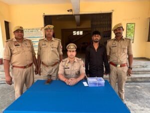 सोनभद्र। पुलिस अधीक्षक सोनभद्र अशोक कुमार मीना द्वारा अपराध एवं अपराधियो के विरुद्ध चलाये जा रहे अभियान के क्रम में अपर पुलिस अधीक्षक (आपरेशन) त्रिभुवन नाथ त्रिपाठी के निर्देशन एंव क्षेत्राधिकारी सदर रणधीर कुमार मिश्र के कुशल पर्यवेक्षण मे अवैध शस्त्र/विस्फोटक पदार्थ व मादक पदार्थ की बरामदगी के क्रम में दिनांक 16.04.2025 को थाना रामपुर बरकोनिया पुलिस को मुखबिर द्वारा सूचना दी गई कि एक व्यक्ति अवैध तमंचा लेकर सिलथम बाजार की तरफ आ रहा है जो थाना रॉबर्ट्सगंज से गोवध के मुकदमें में वांछित भी है और उसकी गिरफ्तारी पर 25,000/- (पच्चीस हजार रुपये) का पुरस्कार भी घोषित है। उक्त सूचना पर थाना रामपुर बरकोनिया पुलिस द्वारा सिलथम बाजार से अभियुक्त संजय हरिजन पुत्र रामकुवंर हरिजन निवासी सरईगढ़ टोला खदरा चौकी सरईगढ़ थाना रायपुर जनपद सोनभद्र उम्र लगभग 35 वर्ष को एक अदद तमंचा (.315 बोर)व 01 अदद जिन्दा कारतूस (.315 बोर) बरामद कर गिरफ्तार किया गया। उक्त बरामदगी व गिरफ्तारी के संबंध में थाना रामपुर बरकोनिया पर मु0अ0सं0 – 31/2025 धारा 3/25 आर्म्स एक्ट का अभियोग पंजीकृत कर गिरफ्तार अभियुक्त को मा0 न्यायालय रवाना किया गया।