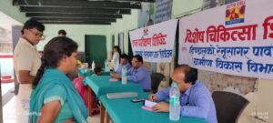 तीन चिकित्सकों का दल किया मरीजों का स्वास्थ्य परीक्षण।