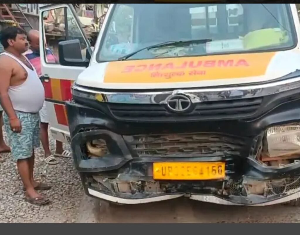 दुर्घटना के बाद एंबुलेंस चालक मौके से हुआ फरार।