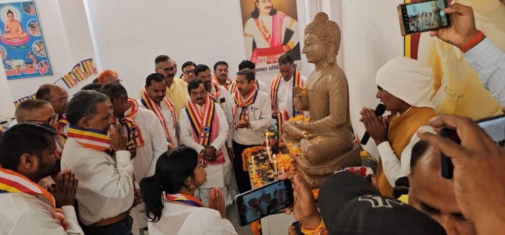 सोनभद्र। नगर स्थित कुशवाहा भवन पर तथागत गौतम बुद्ध का जन्मदिन समारोह सर्व समाज के द्वारा मनाया गया सामूहिक रूप से सभी लोगों ने मिलकर तथागत की मूर्ति के सामने दीप प्रज्वलित करते हुए बोधाचार्य अमरनाथ बौद्ध शिव शंकर बौद्ध सरोज बौद्धअरुण जी के द्वारा त्रिशरण पंचशील एवं अष्टांगिक मार्गों का ध्यान करते हुए बुद्ध वंदना कराई गई सांसद छोटेलाल खरवार ने कहा शिक्षा के द्वारा ही हम समाज में व्याप्त कुरीतियों को परिवर्तन ला सकते हैं बौद्ध दर्शन मानव जीवन को उन्नत बनाने का संदेश देता है डॉ संजय कुमार सिंह ने कहा बुद्ध के सारे विचार वैज्ञानिक सोच से पूर्ण थे सोचनाऔर समझना वैज्ञानिक तार्किकता का समावेश इसी कारण पूरे विश्व में तथागत गौतम बुद्ध आज भी प्रासंगिक है अपने ऊपर नियंत्रण का मार्ग विपश्यना है डॉ दिनेश ने कहा अष्टांगिक मार्ग के द्वारा जीवन में परिवर्तन लाया जा सकता है पंकज कुशवाहा ने कहा आज भी बुद्ध के ऊपर शोध हो रहे हैं शांति का मार्ग पूरे विश्व में एक ऐसे हथियार के रूप में दिया जो सर्वमान्य है रविकांत कुशवाहा ने कहा कि प्रेम के द्वारा जग को जीता जा सकता है घृणा हमेशा दूरी पैदा करती है सरोज बौद्ध ने कहा तृष्णा ही दुख का कारण है इसका निवारण पर निवारण का उपचार तथागत गौतम बुद्ध का सिद्धांत है शशिकांत वर्मा मनोज ने कहा बुद्ध हर समय लोगों के लिए प्रेरणा के स्रोत रहेंगे कृपा शंकर चौहान प्रमोद यादव राजेश जायसवाल ने कहा बुद्ध का जन्मदिन ज्ञान प्राप्ति महापरिनिर्वाण एक नक्षत्र में होना अपने आप में महत्व पूर्ण है डॉ ओम प्रकाश मौर्य श्रीनाथ वर्मा कमलेश मास्टर ने कहा बुद्ध का जीवन हम सब लोगों के लिए एक प्रेरणा का स्रोत है मोहन कुशवाहा ने सभी लोगों का धन्यवाद ज्ञापित करते हुए कहां की जब भी पूरे विश्व में शांति की बात आती है तो लोग बुद्ध को याद करते हैं इस अवसर पर छोटे-छोटे बच्चों ने बुद्ध के ऊपर अपनी कविताएं सुनाई कार्यक्रम के अंत में खीर रूपी प्रसाद सभी लोगों ने ग्रहण किया तथा एक दूसरे को बुद्ध पूर्णिमा की बधाई दें सभी लोगों ने मंगल कामना की अपने देश में अमन चैन कायम रहे कार्यक्रम का संचालन डॉ संजय कुमार सिंह ने किया।