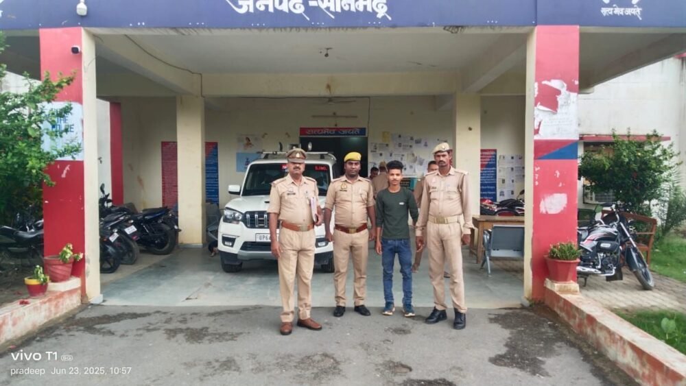 सोनभद्र। कि दिनांक 20.06.2025 को आवेदक शिवमंगल मल्लाह पुत्र अगनु निवासी ओबरा डैम रेलवे स्टेशन पहाड़ी थाना ओबरा जनपद सोनभद्र द्वारा थाना ओबरा पर लिखित प्रार्थना पत्र दिया कि मेरे विपक्षीगण 1.बब्बू पुत्र रमेश बैगा निवासी ओबरा डैम रेलवे स्टेशन पहाड़ी थाना ओबरा जनपद सोनभद्र 2.सुमित गौड पुत्र मुन्नालाल गौड निवासी ग्राम पनारी टोला कडिया थाना ओबरा जनपद सोनभद्र 3.राहुल पुत्र कनहई निवासी कडिया थाना जनपद सोनभद्र ने पुरानी रंजीश को लेकर मेरी झोपड़ी को जला दिया गया है जिसके सम्बन्ध में थाना ओबरा पर मु0अ0सं0-138/2025 धारा 326(जी), 351(2) बीएनएस का अभियोग उपरोक्त 03 व्यक्तियों के विरुद्ध पंजीकृत किया गया। उक्त अभियोग से सम्बन्धित वांछित अभियुक्तगण की शीघ्र गिरफ्तारी हेतु पुलिस अधीक्षक सोनभद्र अशोक कुमार मीणा के विशेष निर्देश व अपर पुलिस अधीक्षक मुख्यालय अनिल कुमार के पर्यवेक्षण में एवं क्षेत्राधिकारी ओबरा हर्ष पाण्डेय के कुशल नेतृत्व में आज दिनांक 23.06.2025 को थाना ओबरा पुलिस द्वारा उपरोक्त अभियोग से सम्बन्धित वांछित अभियुक्त सुमित गौड पुत्र मुन्नालाल गौड निवासी ग्राम पनारी टोला कडिया थाना ओबरा जनपद सोनभद्र उम्र 19 वर्ष को मुखबिर की सूचना पर समय करीब 5.30 बजे अभियुक्त के घर ग्राम कड़िया से गिरफ्तार कर माननीय न्यायालय भेजा गया ।