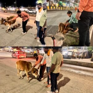 डाला सोनभद्र। नगर में मंगलवार की रात को भारत राष्ट्र सेवा ट्रस्ट के सौजन्य से सड़क दुर्घटना ना हो इसको ध्यान में रखते हुए वाराणसी शक्ति नगर राज्य मार्ग पर बैठी गायों को रिफ्लेक्टर काॅलर बाँधा गया है लोक जनशक्ति पार्टी किसान प्रकोष्ठ जिलाध्यक्ष विनीत पाण्डेय ने बताया की आये दिन सड़क पर बैठे मवेशियों /गाय का अंधेरे के वजह से सड़क दुर्घटना की शिकार हो जाती थी जिसको ध्यान में रखते हुए ट्रस्ट के अंशु पटेल, अवनीश पाण्डेय, गोविंद भारद्वाज व राकेश राय निर्भय चौधरी उर्फ कुंजू के द्वारा नगर के सड़क पर मौजूद समस्त गायों को रिफ्लेक्टर काॅलर बाँधा गया हैं।