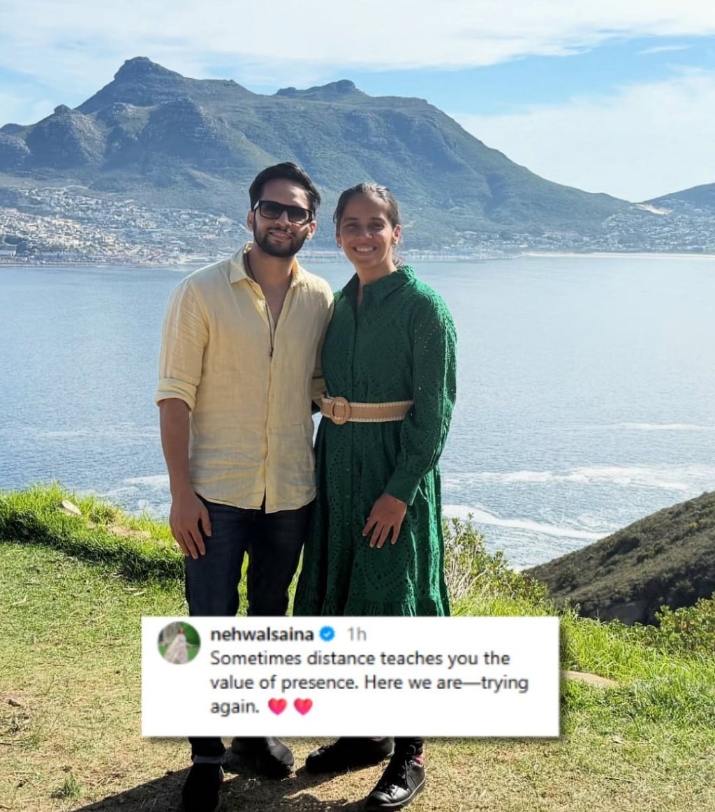 साइना नेहवाल ने मारा यू टर्न.हालांकि, दोनों ने अपने सोशल मीडिया हैंडल पर एक तस्वीर साझा करके अपने फॉलोअर्स को चौंका दिया, जिसमें उन्होंने बताया कि उनकी दूरी ने उन्हें साथ रहने की अहमियत का एहसास कराया है और वे अपनी शादी को बचाने की कोशिश कर रहे हैं. अब से दोनों ही एक साथ रहेंगे. ऐसा लगता है कि दोनों के बीच सबकुछ ठीक हो गया है. साइना ने पोस्ट में लिखा, कभी-कभी दूरी आपको उपस्थिति का मूल्य सिखाती है. हम फिर से कोशिश कर रहे हैं.”