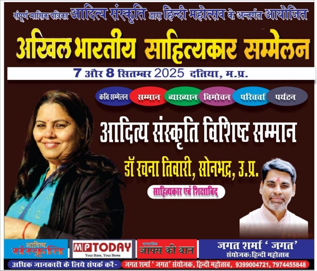 -मां पीताम्बरा की नगरी दतिया मध्यप्रदेश में 7 और 8 सितंबर को होगा पंचम अखिल भारतीय साहित्यकार सम्मेलन- 2025।