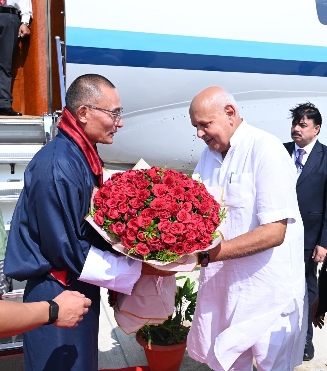 अयोध्या पहुंचने पर भूटान के प्रधानमंत्री का एयरपोर्ट पर प्रभारी मंत्री सूर्य प्रताप शाही ने स्वागत किया. प्रधानमंत्री ने राम जन्मभूमि परिसर में प्रभारी मंत्री संग दर्शन-पूजन किया और लगभग ढाई घंटे तक परिसर में समय व्यतीत किया. राम मंदिर ट्रस्ट के महासचिव चंपत राय ने उन्हें अंग वस्त्र भेंट कर सम्मानित किया. भूटान के प्रधानमंत्री ने रामलला के दर्शन के साथ ही राम दरबार का आशीर्वाद लिया. इसके बाद उन्होंने कुबेर टीला स्थित प्राचीन शिव मंदिर में अभिषेक कर पूजा-अर्चना की. उनके आगमन पर सुरक्षा व्यवस्था के विशेष इंतजाम किए गए थे.