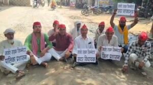 खराब सड़क को लेकर सड़क पर सपा कार्यकर्ताओं ने किया विरोध प्रदर्शन।