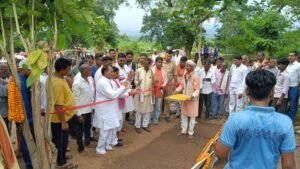 -कोन ब्लॉक के सलैयाडीह गांव में आदिवासियों को फीता बांधकर संगठित होने का मंत्री जी ने दिया संदेश।