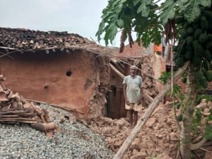 कोन / सोनभद्र -नवसृजित विकास खंड कोन में भारी बारिश के कारण एक कच्चा मकान धराशायी हो गया। घटना बुधवार सुबह करीब 5 बजे की है। मकान के मालिक कन्हाई पुत्र उदय बहादुर (32 वर्ष) और उनका परिवार घटना के समय घर में सो रहे थे। जिसके क्रम में उदय बहादुर ने बताया कि रात में अचानक दीवार गिरने की आवाज आई। परिवार के सभी सदस्य चारपाई से उठकर बाहर भाग निकले। कुछ ही देर में पूरी दीवार गिर गई।