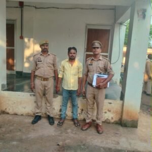 सोनभद्र।पुलिस अधीक्षक सोनभद्र अशोक कुमार मीणा के कुशल निर्देशन में जनपद में वांछित अपराधियों की गिरफ्तारी के हेतु चलाये जा रहे अभियान के क्रम में तथा अपर पुलिस अधीक्षक मुख्यालय सोनभद्र, अनिल कुमार व क्षेत्राधिकारी नगर रणधीर मिश्रा के पर्वेक्षण में थाना रॉबर्ट्सगंज पुलिस द्वारा थाना रा०गंज पर पंजीकृत मु०अ०सं० 932/25 धारा 69, 115(2), 352, 351(3) भारतीय न्याय संहिता से सम्बन्धित 01 नफर वांछित अभियुक्त विमलेश कुमार मौर्या पुत्र जिरंजीव सिंह मौर्या नि० ग्राम मधुपुर थाना रा०गंज जनपद सोनभद्र उम्र करीब 38 वर्ष को मुखबिर की सूचना पर आज दिनांक 18.09.2025 को गिरफ्तार कर विधिक कार्यवाही करते हुए मा0 न्यायालय भेजा गया।