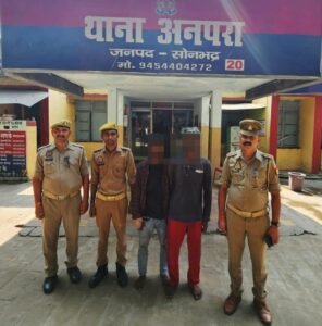 सोनभद्र। पुलिस अधीक्षक अभिषेक वर्मा के निर्देशन में अपराध एवं अपराधियों के विरुद्ध चलाए जा रहे अभियान के क्रम में थाना अनपरा पुलिस को आज महत्वपूर्ण सफलता प्राप्त हुई है थाना अनपरा पुलिस द्वारा मुकदमा अपराध संख्या-170/2025 धारा 105 भारतीय न्याय संहिता (BNS) में वांछित अभियुक्त अर्जुन पुत्र सुरज निवासी बनकट मोड़, थाना अनपरा सोनभद्र स्थायी पता ग्राम टाडी, थाना रोहतास (बिहार) व धर्मेन्द्र पुत्र त्रिवेणी निवासी बनकट मोड़, रेनूसागर, थाना अनपरा, सोनभद्र स्थायी पता ग्राम सिन्दुरिया, थाना भवनाथपुर, झारखण्ड को आज दिनांक 16.10.2025 को गिरफ्तार किया गया है। उक्त अभियुक्तगण द्वारा गैर इरादतन हत्या की घटना को अंजाम दिया गया था, जिसके संबंध में थाना अनपरा पर अभियोग पंजीकृत किया गया था। पुलिस टीम द्वारा सतत प्रयास कर अभियुक्तों को गिरफ्तार कर न्यायिक कार्रवाई की जा रही है।