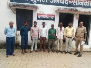 सोनभद्र। पुलिस अधीक्षक अभिषेक वर्मा के कुशल निर्देशन में जनपद में अपराध एवं अपराधियों पर प्रभावी नियंत्रण तथा शांति व्यवस्था बनाए रखने हेतु चलाए जा रहे अभियान के क्रम में, अपर पुलिस अधीक्षक (मुख्यालय) अनिल कुमार के पर्यवेक्षण एवं क्षेत्राधिकारी ओबरा हर्ष पाण्डेय के नेतृत्व में थाना जुगैल पुलिस द्वारा निर्णायक कार्यवाही की गई। थाना प्रभारी निरीक्षक जुगैल नागेश कुमार सिंह द्वारा गठित पुलिस टीम द्वारा आज दिनांक 26.10.2025 को शांति व्यवस्था बनाए रखने के उद्देश्य से थाना क्षेत्र के खरहरा टोला देवखर में चेकिंग अभियान चलाया गया। इस दौरान अशांति फैलाने एवं कानून व्यवस्था भंग करने की आशंका के आधार पर कुल 07 अभियुक्तों को धारा 170, 126, 135 बी.एन.एस.एस. के अंतर्गत गिरफ्तार कर चालान माननीय न्यायालय किया गया।