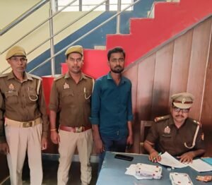 सोनभद्र। पुलिस अधीक्षक अभिषेक वर्मा द्वारा अपराध एवं अपराधियों के विरुद्ध चलाए जा रहे अभियान के क्रम में, अपर पुलिस अधीक्षक मुख्यालय एवं क्षेत्राधिकारी नगर के पर्यवेक्षण में थाना रॉबर्ट्सगंज पुलिस द्वारा पंजीकृत मु0अ0सं0 803/25, धारा 126(2), 115(2), 352, 351(2), 140(1) भारतीय न्याय संहिता से संबंधित वांछित अभियुक्त अमित पुत्र नागेन्द्र, निवासी ऐलाही, थाना रॉबर्ट्सगंज, जनपद सोनभद्र, उम्र लगभग 25 वर्ष को आज दिनांक 05.11.2025 को मुखबिर की सूचना पर ग्राम ऐलाही नहर मार्ग स्थित पीपल के पेड़ के पास से गिरफ्तार किया गया। गिरफ्तार अभियुक्त को आवश्यक विधिक कार्रवाई पूर्ण कर माननीय न्यायालय भेजा गया।