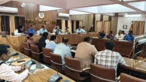 सोनभद्र। सोनभद्रमे मुख्यमंत्री उत्तर प्रदेश योगी आदित्य नाथ जी का आगामी दिनों में प्रस्तावित भ्रमण/‘‘जनजातीय गौरव दिवस’’ कार्यक्रम के अवसर पर आगमन को लेकर चोपन में की जा रही तैयारियांे के सम्बन्ध में आज जिलाधिकारी व पुलिस अधीक्षक ने अधिकारियों के साथ बैठक की, बैठक के दौरान जिलाधिकारी ने उपस्थित अधिकारियों को निर्देशित करते हुए कहा कि कार्यक्रम स्थल पर सभी अधिकारी अपनी तैयारियां समय से पूर्ण कर ले जिससे कि कार्यक्रम के दिन किसी भी प्रकार की समस्या का सामना न करना पड़े और कार्यक्रम को भव्य और दिव्य तरिके से सम्पन्न कराया जाये इस दौरान उन्होनें कार्यक्रम के लिए की जा रही तैयारियों के सम्बन्ध में अधिकारियांे से बिन्दुवार जानकारी प्राप्त की और आवश्यक दिशा निर्देश दियें, इस दौरान उन्होनें अधिशासी अधिकारी नगर पालिका को निर्देशित किया कि कार्यक्रम स्थल पर पीने के पानी की समुचित व्यवस्था की जाये और निर्धारित स्थलों पर पब्लिक शौचालय स्थापित करायी जाये, इस दौरान पुलिस अधीक्षक ने उपस्थित अधिकारियों को सम्बोधित करते हुए कहा कि ट्रैफिक प्लान बेहतर ढंग से बना लिया जाये और वाहन पार्किंग हेतु स्थल का चयन करते हुए वाहन की पार्किगं करायी जाये वाहन पार्किंग व रूट डायर्वजन की सूचना मीडिया में प्रसारित करायी जाये जिससे कि आम जनमानस को आवागमन में असुविधा का सामना न करना पड़े, इस मौके पर अपर जिलाधिकारी वि0/रा0 वागीश कुमार शुक्ला, अपर जिलाधिकारी न्यायिक रमेश कुमार, अपर जिलाधिकारी नमामि गंगें रोहित यादव, अपर पुलिस अधीक्षक अनिल कुमार, जिला विकास अधिकारी हेमन्त कुमार सिंह सहित सम्बन्धित अधिकारी व कर्मचारिगण उपस्थित रहें।