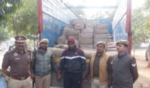 सोनभद्र। पुलिस अधीक्षक अभिषेक वर्मा के निर्देशन में, अपर पुलिस अधीक्षक मुख्यालय अनिल कुमार एवं क्षेत्राधिकारी पिपरी हर्ष पाण्डेय के कुशल पर्यवेक्षण में अवैध मादक पदार्थों के विरुद्ध चलाए जा रहे अभियान के क्रम में थाना पिपरी पुलिस व एसओजी टीम को बड़ी सफलता प्राप्त हुई है। दिनांक 25.12.2025 को समय 15.10 बजे, मुखबिर की सूचना पर खाड़पाथर–हाथीनाला जंगल मुख्य मार्ग पर चेकिंग के दौरान एक ट्रक को रोका गया। जांच करने पर ट्रक में आलू के बोरों के बीच छिपाकर झारखंड के रास्ते बिहार ले जाई जा रही 260 पेटी में कुल 7440 शीशी (2296.80 लीटर) अवैध अंग्रेजी शराब बरामद की गई। बरामद अवैध अंग्रेजी शराब की अनुमानित कीमत ₹17 लाख, ट्रक की कीमत लगभग ₹20 लाख तथा 01 अदद एंड्रॉयड मोबाइल व ₹250/- नकद जामा तलाशी से बरामद किया गया। मौके से एक अंतर्राज्यीय शराब तस्कर को गिरफ्तार किया गया उक्त के संबंध में थाना पिपरी जनपद सोनभद्र पर मु0अ0सं0-254/2025, धारा 318(4)/338/336(3)/340(2) BNS व 60/63/72 आबकारी अधिनियम के अंतर्गत अभियोग पंजीकृत कर अग्रिम विधिक कार्यवाही की जा रही है। गिरफ्तार अभियुक्त नवजोत सिंह द्वारा पूछताछ में बताया गया कि ट्रक में लदी अवैध अंग्रेजी शराब धीरज सिंह की है, जिसे आलू के बोरों के बीच छिपाकर ले जाया जा रहा था ताकि पुलिस से बचा जा सके। धीरज सिंह द्वारा ही उसे रास्ते के निर्देश मोबाइल फोन के माध्यम से दिए जाते थे। अभियुक्त पूर्व में भी कई बार इसी प्रकार शराब की खेप झारखंड के रास्ते बिहार ले जा चुका है। शराब की सकुशल डिलीवरी पर उसे ₹30,000/- प्रति ट्रिप भुगतान किया जाता था। टोल प्लाजा पर नकद भुगतान किया जाता था तथा गाड़ी में फास्टैग नहीं लगा था। भुगतान गूगल पे अथवा डीजल पंप पर किया जाता था।