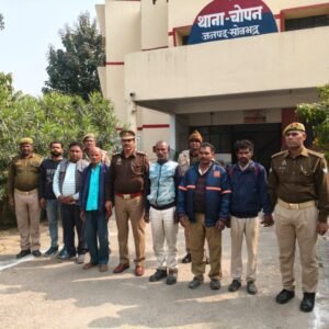 सोनभद्र। पुलिस अधीक्षक के निर्देशन एवं अपर पुलिस अधीक्षक मुख्यालय के पर्यवेक्षण में एवं क्षेत्राधिकारी नगर के कुशल नेतृत्व में वारण्टी/ वांछित अभियुक्तगण की गिरफ्तारी हेतु चलाये जा रहे अभियान के क्रम में थाना चोपन पुलिस द्वारा मा0 न्यायालय द्वारा निर्गत वारंट के क्रम मे आज दिनांक 01.01.2026 को 06 वांरटीगण को गिरफ्तार कर विधिक कार्यवाही करते हुए माननीय न्यायालय भेजा गया ।