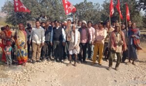 सोनभद्र। सोमवार को पटवध बसुहारी सड़क निर्माण में देरी को लेकर भारतीय कम्युनिस्ट पार्टी ने सांकेतिक प्रदर्शन कर आंदोलन की दी चेतावनी। भारतीय कम्युनिस्ट पार्टी के ब्रांच कमेटी कनछ की पूर्व निर्धारित बैठक कामरेड बंधू गोड़ ( पूर्व प्रधान – कनछ) की अध्यक्षता में हुई, जहां पार्टी के जिला सचिव कामरेड आर के शर्मा, खेत मजदूर यूनियन के नेता। कामरेड अमरनाथ सूर्य भी उपस्थित रहे। बैठक में कार्यकर्ताओं ने पार्टी की मजबूती और विभिन्न समस्याओं पर चर्चा करते हुए पटवध बसुहारी मार्ग के निर्माण में हो रहे देरी पर आक्रोश व्यक्त किया। जिस पर सैकड़ों ग्रामीणों ने समर्थन करते हुए पटवध बसुहारी सड़क के खस्ताहाल को लेकर शासन प्रशासन के खिलाफ नारेबाजी करते हुए निर्माणाधीन सड़क पर उतर करीब आधे घंटे तक विरोध प्रदर्शन किया और कहा कि पटवध बसुहारी मार्ग जो कि नक्सल प्रभावित कई गांवों के लोगों के आवागमन का मात्र एक लाइफ लाईन जैसा मार्ग है, जिस पर सैकड़ों लोगों का प्रतिदिन आवागमन होता है और विभिन्न क्षेत्रों से प्रतिदिन सैकड़ों की संख्या में श्रद्धालुओं का आवागमन भी इसी मार्ग पर स्थित सोनभद्र के चर्चित देवी स्थान ( अमिला भवानी) पर होता है। सरकार देवी स्थानों को पर्यटन के नाम पर बढ़ावा दे रही है। लेकिन बहुचर्चित देवी मंदिर पर श्रद्धालुओं को पंहुचने में खराब रास्ते की वजह से काफी कठिनाइयों का सामना करना पड़ रहा है। जबकि उ.प्र.सरकार के समाज कल्याण मंत्री की पत्नी व चोपन ब्लाक प्रमुख भी इसी क्षेत्र से प्रतिनिधित्व करतीं हैं, इसके वावजूद भी साल भर से बनाएं जा रहे इस सड़क का पूरा निर्माण नहीं हो सका। जो कहीं न कहीं भ्रष्टाचार का इशारा करता है । लोगों ने यह भी कहा की हम ग्रामीणों को इमरजेंसी में समय से अस्पताल पहुंचने में काफी दिक्कतों का सामना करना पड़ रहा है और खराब सड़क की वजह से एम्बुलेंस की भी सुविधा उपलब्ध नहीं हो रही है। प्रदर्शन के दौरान भारतीय कम्युनिस्ट पार्टी के जिला सचिव कामरेड आर के शर्मा ने कहा भाकपा इस सड़क निर्माण में हो रही देरी पर आज सांकेतिक प्रदर्शन कर चेतावनी दे रही है कि पटवध बसुहारी मार्ग के निर्माण सामग्री व गुणवत्ता की जांच की जाए और इस मार्ग के निर्माण में तेजी ला कर यथाशीघ्र पूरा कराया जाए ।जिससे दर्जनों गांवों के लोगों सरल व सुलभ आवागमन प्राप्त हो और अमिला भवानी दर्शन के आने जाने वाले श्रद्धालुओं को भी वर्तमान जटिल रास्ते से तत्काल राहत पहुंचाया जाए। अन्यथा क्षेत्रीय ग्रामीणों के साथ भाकपा जल्द ही बड़े पैमाने पर आंदोलन करने को बाध्य होगी। भाकपा नेताओं ने बताया कि 12 फरवरी को मजदूरों के राष्ट्रव्यापी हड़ताल को समर्थन देते हुए भाकपा जिला कौंसिल द्वारा जनपद की विभिन्न समस्
