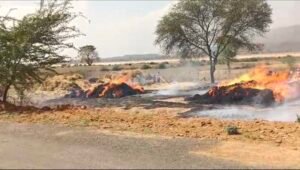 सोनभद्र। जनपद सोनभद्र के चोपन थाना क्षेत्र अंतर्गत कोटा ग्राम पंचायत के अम्मटोला में उस समय अफरा-तफरी मच गई, जब दोपहर करीब 1 बजे खलियान में अचानक भीषण आग लग गई। देखते ही देखते आग ने विकराल रूप धारण कर लिया और आसपास की खड़ी फसलों को अपनी चपेट में ले लिया।प्रत्यक्षदर्शियों के अनुसार, आग इतनी तेजी से फैली कि ग्रामीणों को संभलने तक का मौका नहीं मिला। लोगों ने अपने स्तर पर आग बुझाने का भरसक प्रयास किया, लेकिन तेज लपटों के आगे उनकी कोशिशें नाकाम साबित हुईं। इस भीषण आगजनी में करीब 6 बीघा खेत में खड़ी गेहूं, चना और जौ की फसल पूरी तरह जलकर नष्ट हो गई। इससे खेत मालिक कृपा शंकर उपाध्याय और बटाईदार गोपाल केवट को भारी आर्थिक नुकसान उठाना पड़ा है घटना की सूचना मिलते ही दमकल विभाग की टीम मौके पर पहुंची, लेकिन तब तक आग अपना कहर बरपा चुकी थी और अधिकांश फसल जलकर राख हो चुकी थी।फिलहाल आग लगने के कारणों का पता नहीं चल सका है। ग्रामीणों ने आशंका जताई है कि यह हादसा लापरवाही या किसी अज्ञात कारण से हुआ हो सकता है। मामले की जांच की मांग की जा रही है। इस घटना से प्रभावित किसानों की आजीविका पर गहरा असर पड़ा है। मेहनत से तैयार की गई फसल के नष्ट हो जाने से परिवारों के सामने आर्थिक संकट खड़ा हो गया है। घटना की सूचना स्थानीय लेखपाल को दे दी गई है। वहीं ग्रामीणों और पीड़ित परिवारों ने प्रशासन से तत्काल मुआवजा देने और उचित जांच कराने की मांग की है, ताकि उन्हें राहत मिल सके अम्मटोला में हुई इस आगजनी की घटना ने एक बार फिर किसानों की असुरक्षा और प्राकृतिक/अकस्मात आपदाओं के प्रति उनकी निर्भरता को उजागर कर दिया है। अब सभी की नजर प्रशासनिक कार्रवाई और पीड़ितों को मिलने वाली सहायता पर टिकी हुई है।