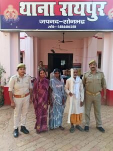सोनभद्र। पुलिस अधीक्षक अभिषेक वर्मा एवं अपर पुलिस अधीक्षक अनिल कुमार के निर्देशन में तथा क्षेत्राधिकारी सदर राज सोनकर के कुशल पर्यवेक्षण में जनपद में चलाए जा रहे अपराधियों की गिरफ्तारी अभियान के क्रम में थाना रायपुर पुलिस को महत्वपूर्ण सफलता प्राप्त हुई है। आज दिनांक 06.04.2026 को निरीक्षक उदयभान राव मय पुलिस टीम द्वारा विवेचना के दौरान प्राप्त मुखबिर खास की सूचना पर कार्यवाही करते हुए ग्राम पसवनिया टोला बलियारी में हुई घटना, जिसमें एक व्यक्ति की मृत्यु हो गई थी, के संबंध में थाना रायपुर पर पंजीकृत मु0अ0सं0 60/2026 धारा 115(2), 352, 105 बीएनएस में वांछित अभियुक्तगणों को दरमा पहाड़ी तिराहे के पास से समय लगभग 13:00 बजे गिरफ्तार कर माननीय न्यायालय के समक्ष भेजा गया। अभियुक्तगण किसी साधन की तलाश में भागने की फिराक में खड़े थे।