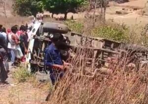 म्योरपुर सोनभद्र। म्योरपुर थाना क्षेत्र के पड़री ग्राम पंचायत अंतर्गत कमरीडाड़ टोला में शनिवार दोपहर करीब 12 बजे एक बड़ा सड़क हादसा हो गया। सवारियों से भरी एक पिकअप वाहन अनियंत्रित होकर पलट गई, जिससे मौके पर अफरा-तफरी मच गई। हादसे के समय वाहन में दो दर्जन से अधिक यात्री सवार बताए जा रहे हैं।