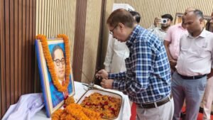 कार्यक्रम का शुभारंभ बाबा साहब के चित्र पर माल्यार्पण एवं पुष्प अर्पित करके किया गया इस अवसर पर जिलाधिकारी बी0एन0 सिंह, अपर जिलाधिकारी वि0/रा0 वगीश कुमार शुक्ला, अपर जिलाधिकारी न्यायिक रमेश चंद्र, सहायक निर्वाचन अधिकारी जगरूप पटेल, पर्यटन अधिकारी राजेश भारती, जिला सूचना विज्ञान अधिकारी निजामुद्दीन अपर जिला सूचना अधिकारी विनय कुमार सिंह प्रशासनिक अधिकारी रामलाल यादव सहित अधिकारियों व कर्मचारियों ने बाबा साहब के चित्र पर पुष्प अर्पित कर उन्हें श्रद्धांजलि दी। इस अवसर पर जिलाधिकारी बी0एन0 सिंह ने अपने संबोधन में कहा कि डॉ. अंबेडकर का जीवन संघर्ष, शिक्षा और समानता का अद्वितीय उदाहरण है उन्होंने समाज के वंचित एवं कमजोर वर्गों को अधिकार दिलाने के लिए संघर्ष किया। उन्होंने कहा कि बाबा साहब द्वारा निर्मित संविधान हमें समानता, स्वतंत्रता और बंधुत्व का मार्ग दिखाता है, जिसे हम सभी को अपने आचरण में उतारना चाहिए।